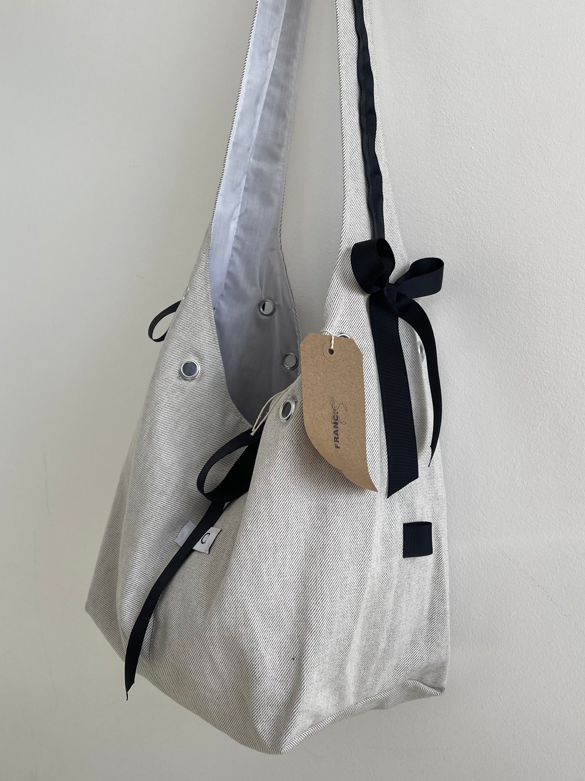 *DISCLAIMER* each product is created out of second hand fabric and used garments. This may mean some areas of fabric have marks or flaws due to its previous life. Please take this into consideration when purchasing your FRANC. bag.