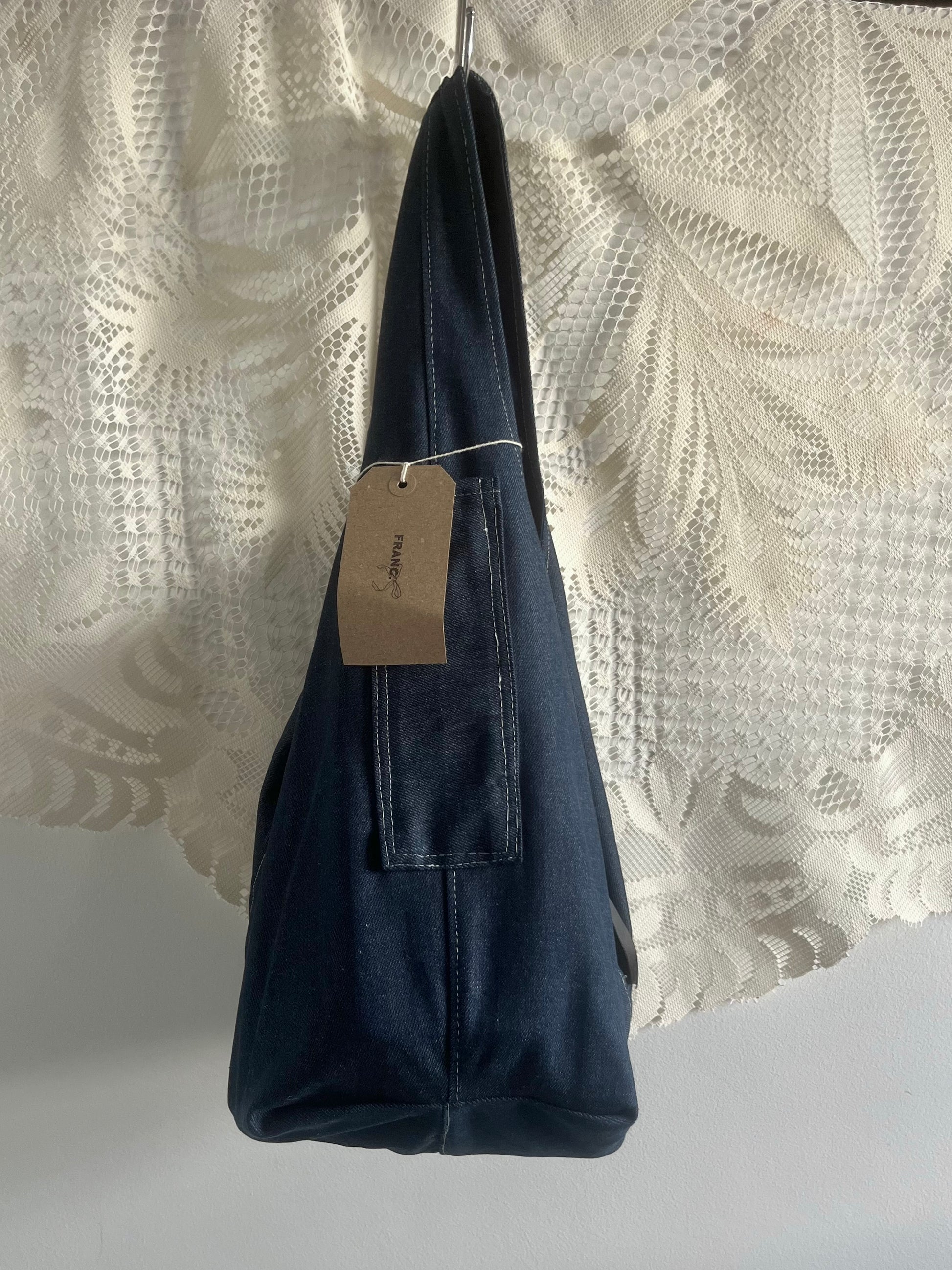 *DISCLAIMER* each product is created out of second hand fabric and used garments. This may mean some areas of fabric have marks or flaws due to its previous life. Please take this into consideration when purchasing your FRANC. bag.